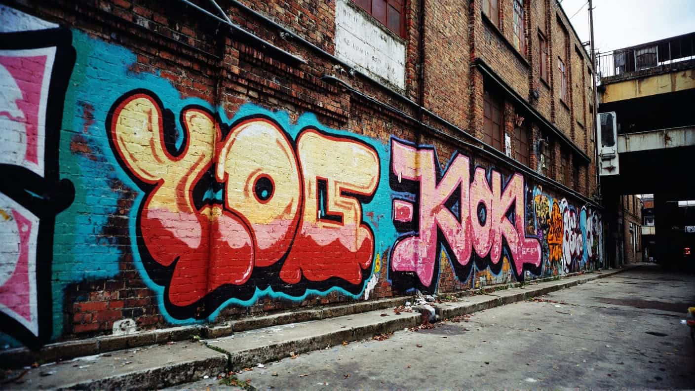 « Une photographie puissante de style street art capturant l’énergie brute de la culture urbaine. Des graffitis vibrants sur des murs en brique ou en béton, avec des couleurs de peinture en spray audacieuses (rouge, cyan, magenta, jaune), des pochoirs, des coulures et des textures superposées. La scène est dynamique, située dans une ruelle urbaine ou une zone industrielle, avec une lumière naturelle et une atmosphère brute. L’accent est mis sur la créativité, la rébellion et l’expression — inspirée par Banksy, Basquiat et Shepard Fairey. Photo en haute résolution avec profondeur cinématographique, contraste entre textures rugueuses et œuvres d’art éclatantes, véritable ambiance de rue. »